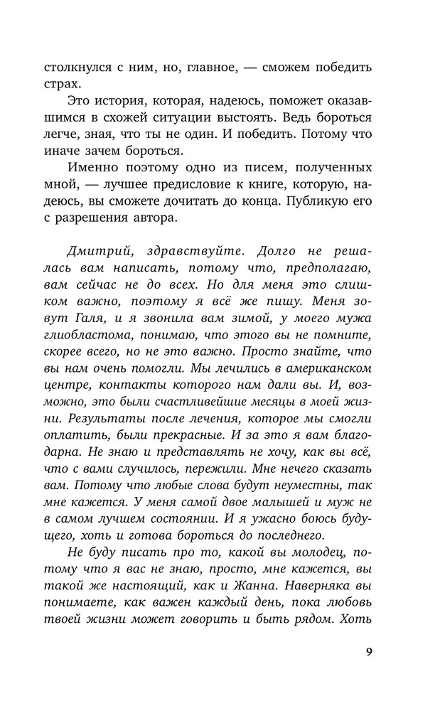 Спасибо автору за честность и за мужество, что смог рассказать свою историю миллионам людей. Очень надеюсь, что она поможет тем людям, кто столкнулся с этой болезнью не остаться один на один с неожиданным диагнозом, растерянностью и болью. Кроме истории Жанны, в этой книге много полезной информации, а еще в ней есть надежда, вера и любовь. Несмотря ни на что. Рекомендую прочесть, не пожалеете.