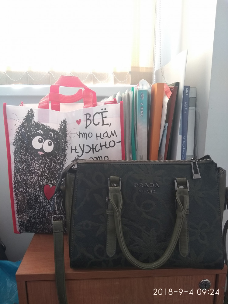 Отличная сумочка! Очень понравилась, яркая, вместительная. Сфотографировала рядом с сумкой, размер очень хороший