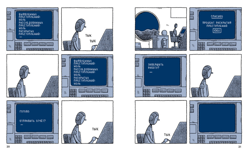 | Том Голд — артист оригинального жанра, расположенного где-то между научно-фантастическим хайку и стихотворным литературоведческим анекдотом; и вдобавок оригинального формата — утрамбованного в один кадр комикса или же, наоборот, одинокой картинки, вмещающей между строк графическую новеллу. В его историях, одновременно гомерически смешных и пронзительно грустных, камни, мышки, роботы и писатели-неудачники летают в будущее, читают Джойса и Беккета, размышляют о жизни и смерти... |