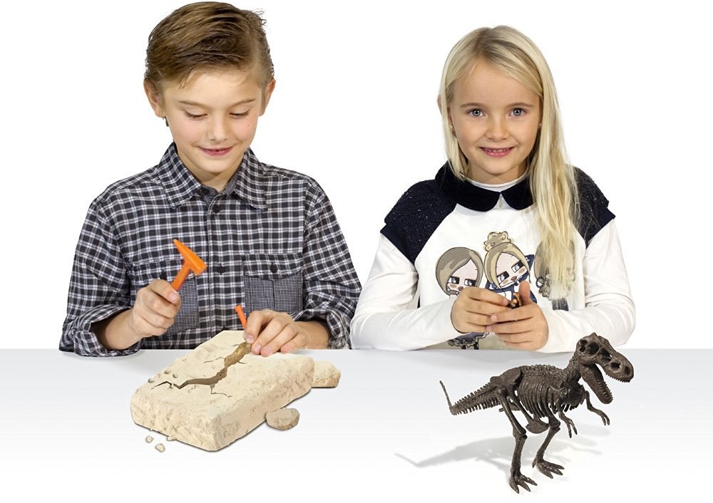 Задумка очень хорошая!!! Но, не каждый ребёнок сам сможет одолеть гипсовый слепок. Инструмент который прилагается в наборе не очень прочный, им трудно было работать даже нашему папе)) Очень много гипсовой пыли остаётся, поэтому нужно подготовить заранее "место для раскопок". В собранном виде модель скелета динозавра получилась довольно большая, все детали подвижны: лапы, голова, челюсть открывается, но крепятся детали не прочно: то хвост отваливается, то голова. Модель не для активной игры, нашему сыну почти 6 лет и его это огорчило. Заняты были всей семьёй, очень интересно рассказали ребёнку про археологию и археологов. Повторюсь, задумка очень хорошая, но качество на 4.