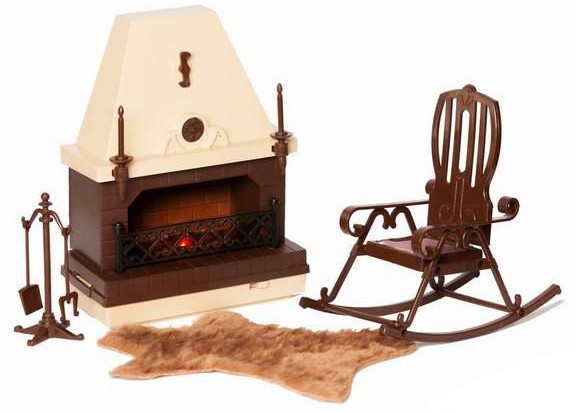 Замечательный набор, к камину необходимо приобретать батарейку квадратную 4,5 V. Горит хорошо, кресло-качалка смотрится интересно, в середине сидушки текстиль.