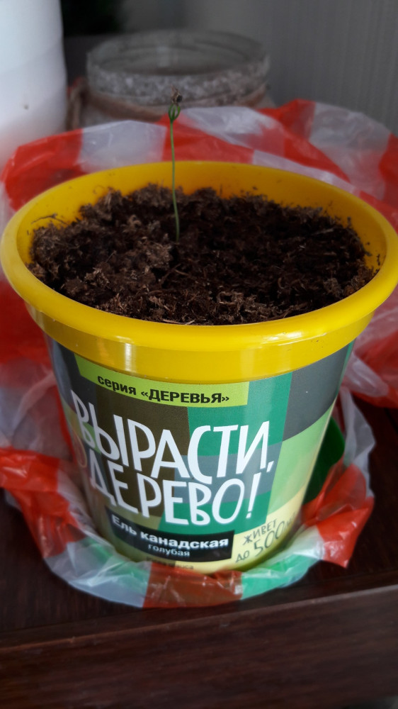 Хороший набор. Ель сначала взошла только одна. Затем еще две. Всего 3 из 10 семян. Вероятно это моя ошибка, то что мало семян проросло. В другой раз буду более аккуратен.