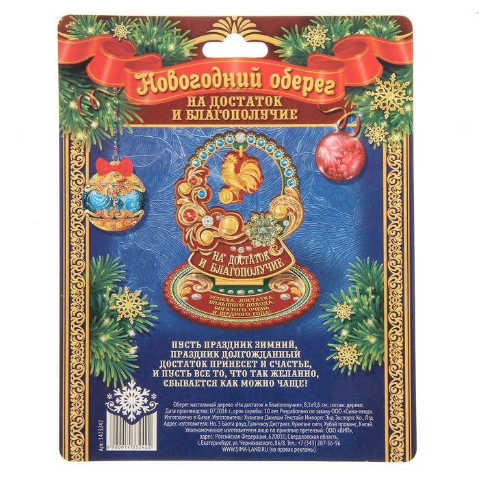 Новогодний оберег «На достаток и благополучие», (9,6×8,1×0,3 см)В данный момент этот товар отсутствует в продаже. Возможно, у нас найдется аналогичный или похожий товар здесь. Приближается самый добрый и долгожданный праздник — Новый год. И каждого из нас ждёт оригинальный и полезный подарок. Новогодний оберег «На достаток и благополучие» — чудесный сувенир, способный привлечь счастье, успех и достаток, стоит лишь расположить его на рабочем столе дома или в офисе! Деревянный талисман на удобной подставке прекрасно впишется в любой интерьер и станет отличным атрибутом праздника. |