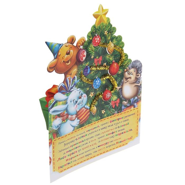 Ёлка-открытка с мишурой «С Новым годом!» (зверята)В данный момент этот товар отсутствует в продаже. Возможно, у нас найдется аналогичный или похожий товар здесь. Новый год — долгожданный зимний праздник, окружённый приятными хлопотами и ощущением сказки. Каждая, даже самая незначительная деталь является неотъемлемой частью предстоящего торжества. Порадуйте друзей, коллег, родных и близких, подарив им кусочек зимнего волшебства. Эта елка станет волшебной, по-новогоднему яркой настольной открыткой с местом для ваших искренних и тёплых пожеланий. Она разместится на письменном или журнальном столе, а также на центральной полочке в доме. |