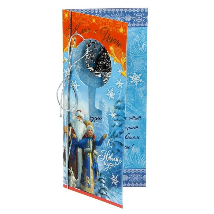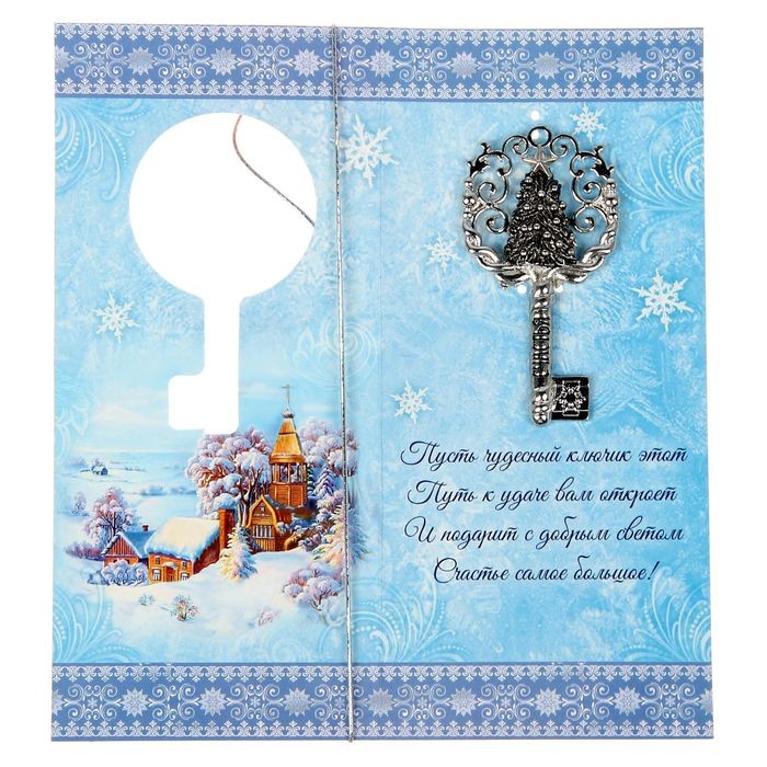 Ключ «Счастья в Новом году»В данный момент этот товар отсутствует в продаже. Возможно, у нас найдется аналогичный или похожий товар здесь. Ключ на открытке - оригинальный подарок на Новый год. Сувенир символизирует открытие, стремление к новым достижениям, успеху и богатству. Талисман можно использовать в качестве брелока или повесить дома. Изделие украшено оригинальной гравировкой и дополнено открыткой. Внутри вы найдёте поздравительное стихотворение. |