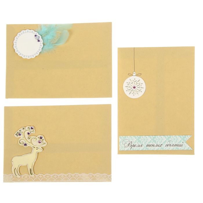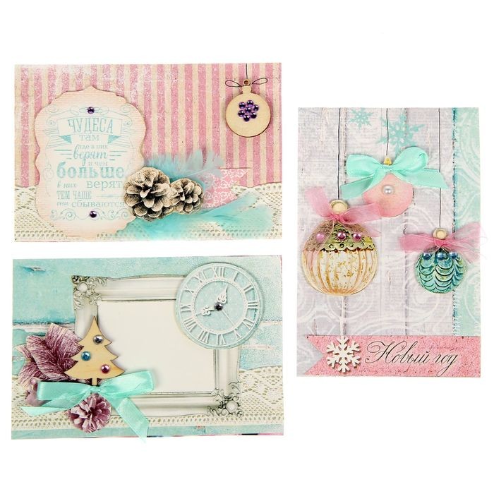 В данный момент этот товар отсутствует в продаже. Возможно, у нас найдется аналогичный или похожий товар здесь. Серия: Новогодние открытки Открытки ручной работы становятся популярнее с каждым днём, ведь вместе с ними вы дарите человеку внимание, эмоции и частичку своей души! Создайте целых три карточки и три конверта из одного набора. Это так просто! Для изготовления маленьких шедевров вам потребуется совсем немного времени.
