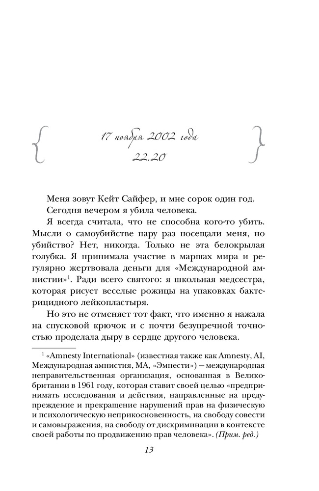 5 из 5! Книга мне очень сильно понравилась. Жуткая и страшная история. После того как я дочитала ее, по моей щеке текли слезы. Настолько она меня зацепила, что я просто сидела и смотрела в стену. Я читала ее когда была дома одна, и было такое чувство, будто на меня кто-то смотрел. Как и Кейт, я считала до трех и смотрела в дальний угол комнаты. Одним словом. ШЕДЕВР