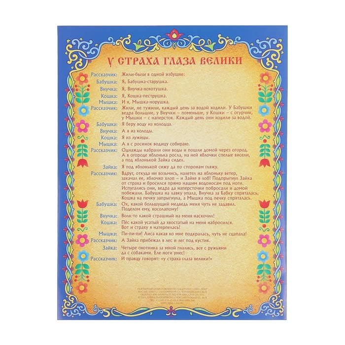 В данный момент этот товар отсутствует в продаже. Возможно, у нас найдется аналогичный или похожий товар здесь. Отличный вариант проведения праздника, будь то День Рождения ребенка или утренник в детском саду — театральная постановка любимых в любом возрасте русских народных сказок.