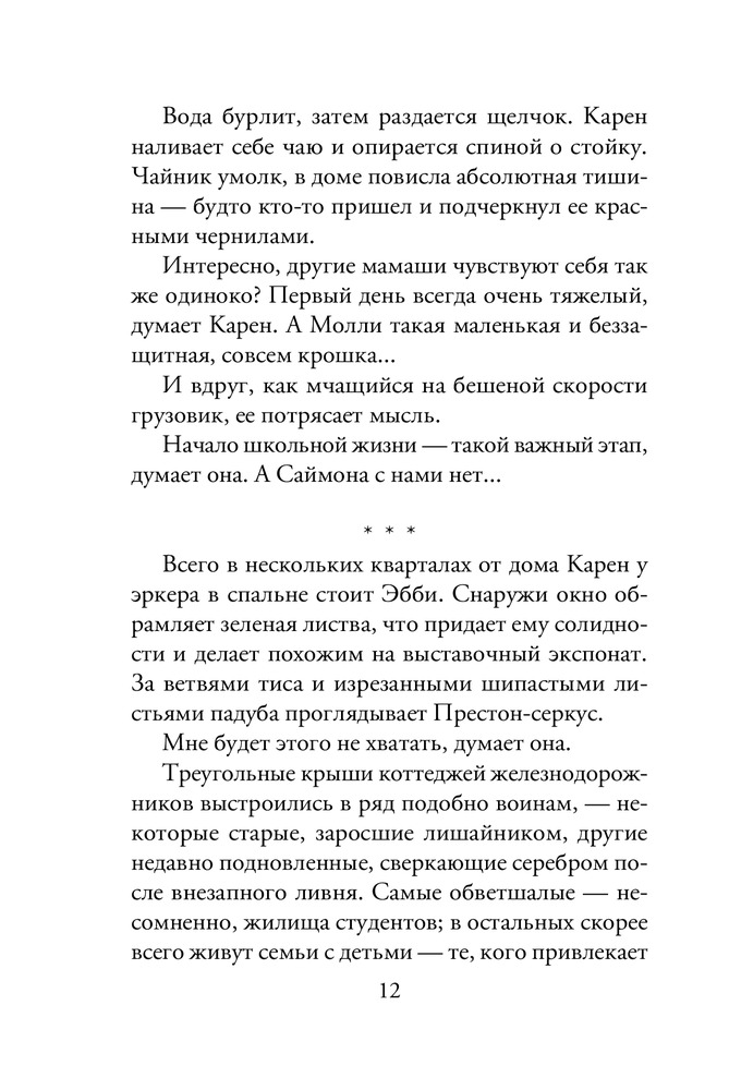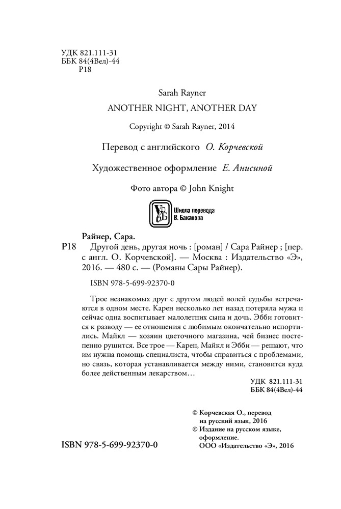 Другой день, другая ночьВ данный момент этот товар отсутствует в продаже. Возможно, у нас найдется аналогичный или похожий товар здесь. Серия: Тем, кто любит С. Ахерн: романы Сары Райнер Трое не знакомых друг с другом людей волей судьбы встречаются в одном месте. Карен несколько лет назад потеряла мужа и сейчас одна воспитывает малолетних сына и дочь. Эбби готовится к разводу – ее отношения с любимым окончательно испортились. Майкл – хозяин цветочного магазина, чей бизнес постепенно рушится. Все трое – Карен, Майкл и Эбби – решают, что им нужна помощь специалиста, чтобы справиться с проблемами, но связь, которая устанавливается между ними, становится куда более действенным лекарством… |