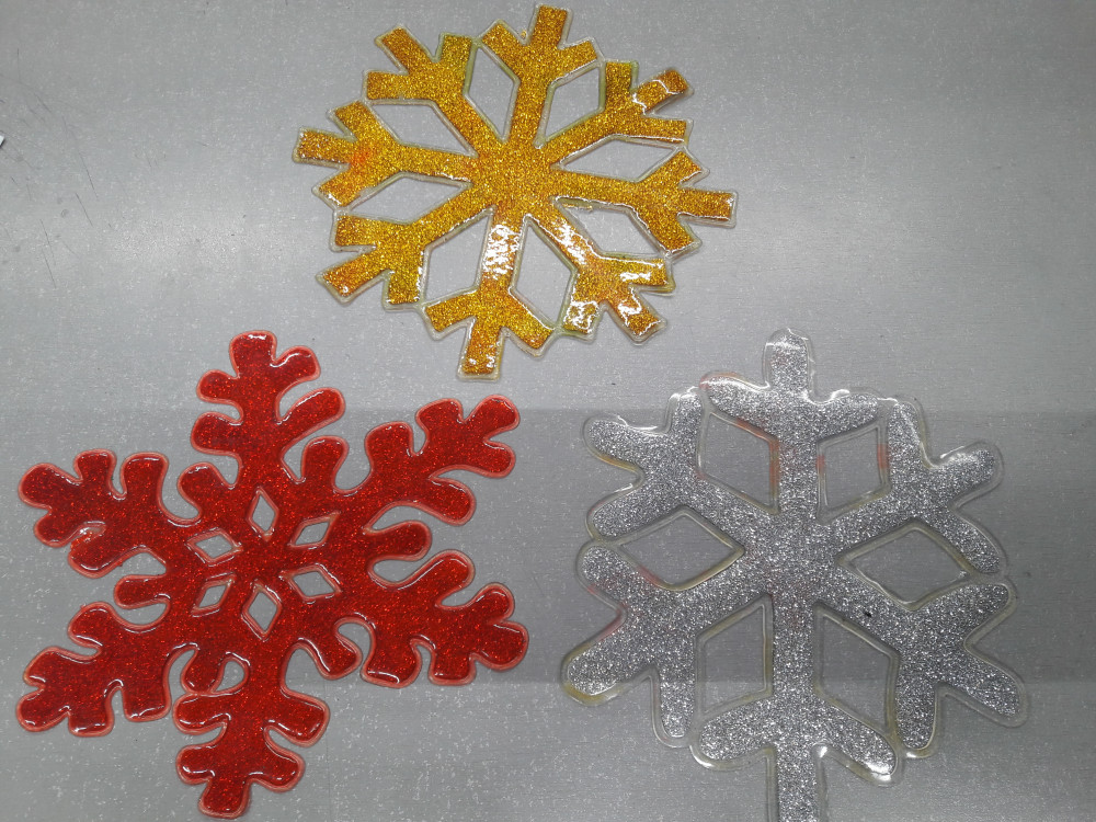 Супер снежинки, купила такие на базаре,потом докупила здесь серебряные :)очень качественные(понравились)прорезинены-можно пользоваться несколько раз,спасибо.