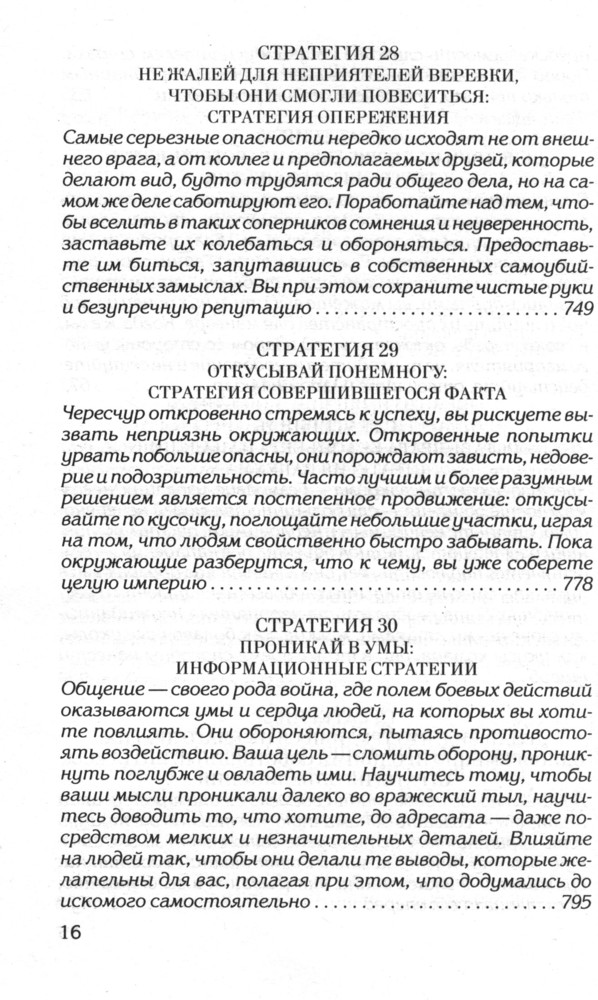 33 стратегии войныВ данный момент этот товар отсутствует в продаже. Возможно, у нас найдется аналогичный или похожий товар здесь. Серия: Кнут и пряник Будь проще, будь туманнее. Создавай свой культ расплывчатой привлекательности. Придавай особое значение эмоциям, в противовес интеллекту. Не пугай людей скукой и скептицизмом. Взывай к чувствам. Придай своей группе структуру религиозной организации. Создавай ритуалы для своих сторонников. Присваивай им имена и титулы, требуй от них жертв. |