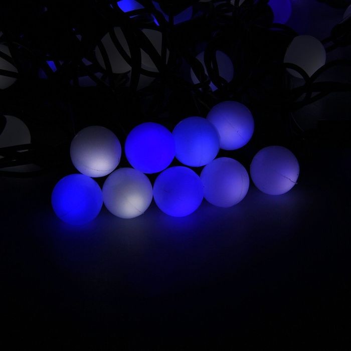 | Luazon Гирлянда «Метраж» с насадками «Шарики 1,5 см», 10 м, LED-100, бело-синий, нить темная, моргает+253 (бонуса)