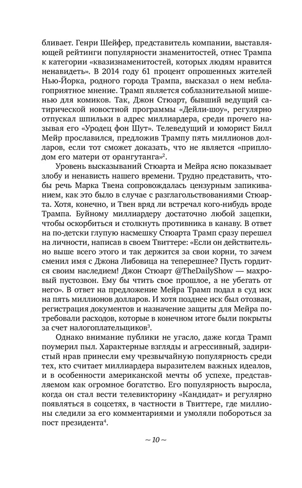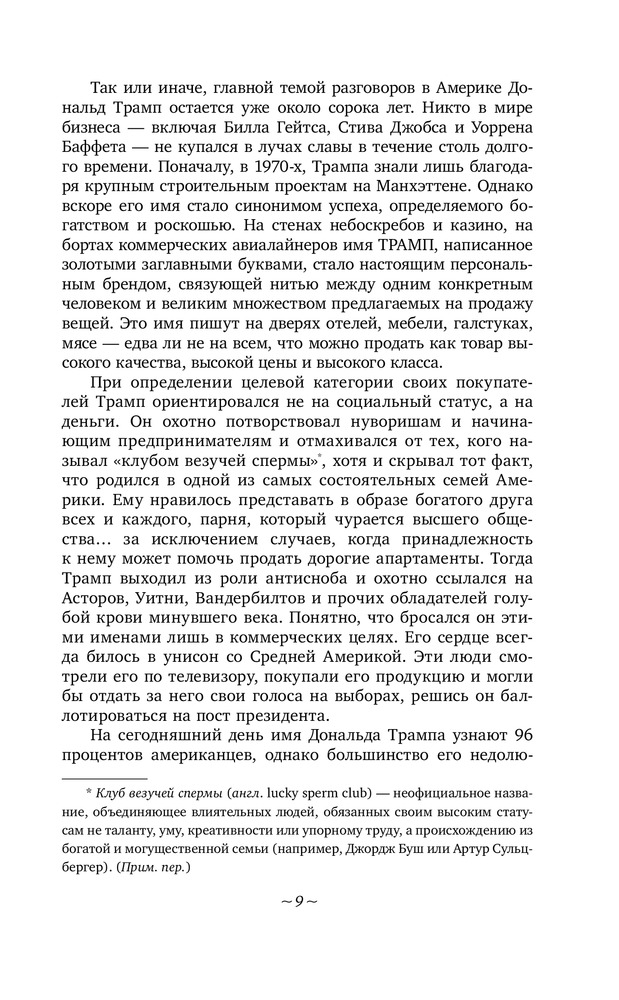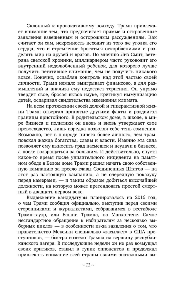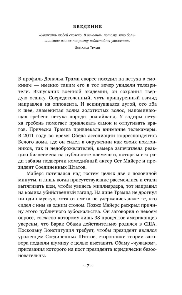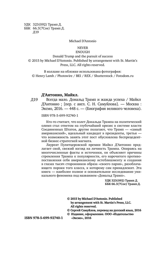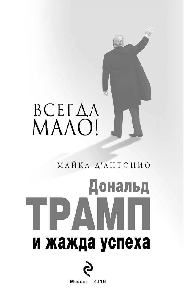 Вcегда мало! Дональд Трамп и жажда успехаВ данный момент этот товар отсутствует в продаже. Возможно, у нас найдется аналогичный или похожий товар здесь. Серия: Биография великого человека Кто-то считает, что взлет Дональда Трампа на политический олимп стал ответом на глубочайший кризис в системе власти Соединенных штатов, другие полагают, что Трамп — «самый американский», идеальный кандидат в президенты, третьи — что возможность занять этот пост обусловлена беспрецедентной бизнес-стратегией магната. |