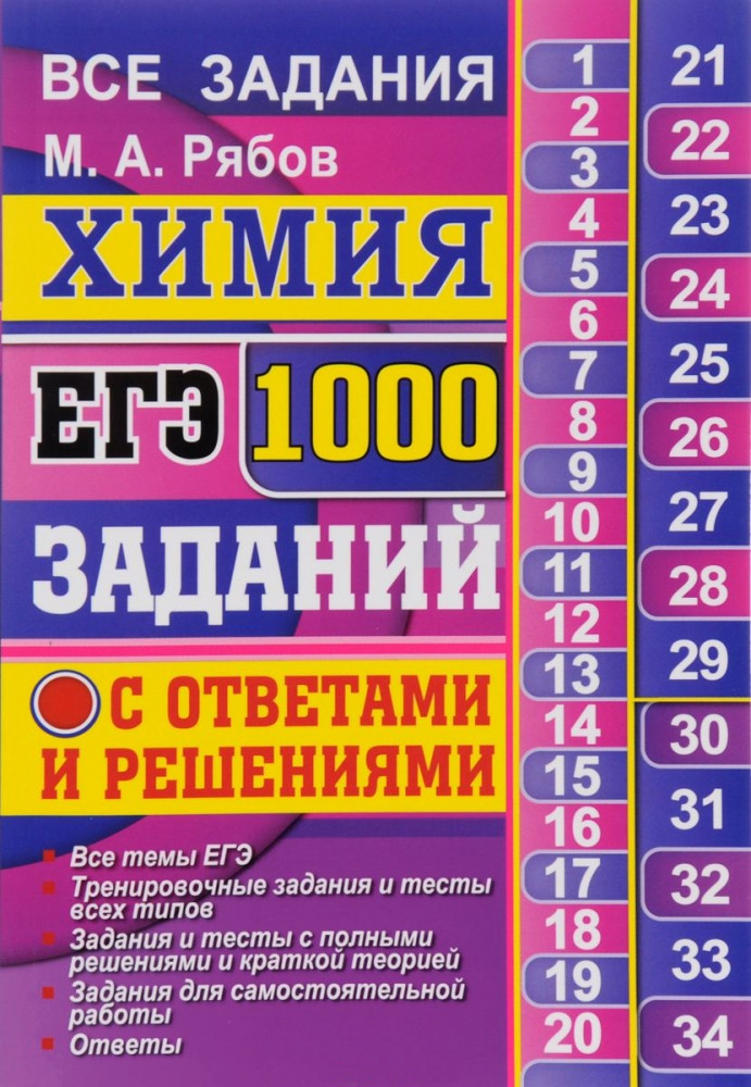 ЕГЭ. Химия. 1000 задач с ответами и решениями. Все задания части 1 и 2В данный момент этот товар отсутствует в продаже. Возможно, у нас найдется аналогичный или похожий товар здесь. Серия: ЕГЭ. Банк заданий Настоящее пособие включает около 1000 тестов и заданий по химии, подготовленных на основе перечня элементов содержания, проверяемых на Едином государственном экзамене по химии. Приводятся решения тестов и заданий, при этом повторяются соответствующие разделы курса химии. Пособие дает возможность самостоятельно составлять многочисленные варианты ЕГЭ в соответствии с текущим планом. Предназначено для учащихся, готовящихся к сдаче ЕГЭ по химии, преподавателей химии, родителей, а также методистов и членов приемных комиссий. |