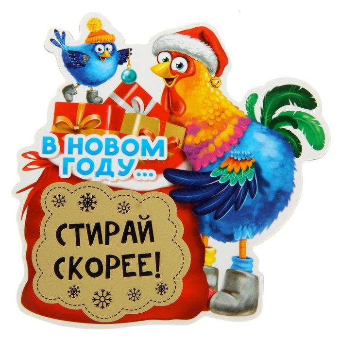 В приложении к Новогоднему подарку смотрится очень забавно. Милый петушок с пожеланием.
