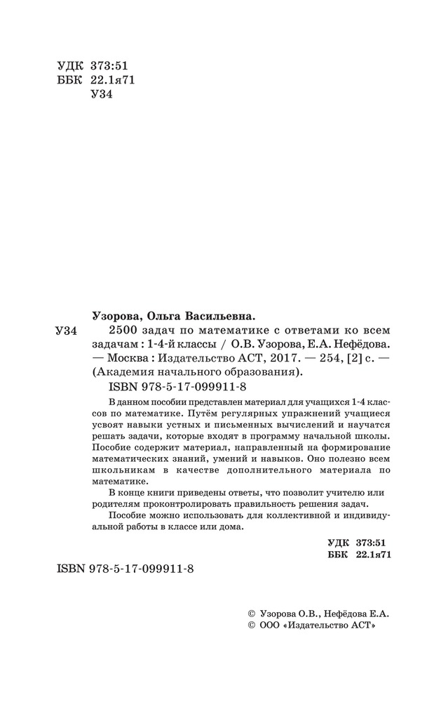 2500 задач по математике с ответами ко всем задачам. 1-4 классыОльга Васильевна Узорова, Елена Алексеевна Нефедова -20% +46 много задач 1-4 классы по классам для занятий увлекает ребёнка серая бумага