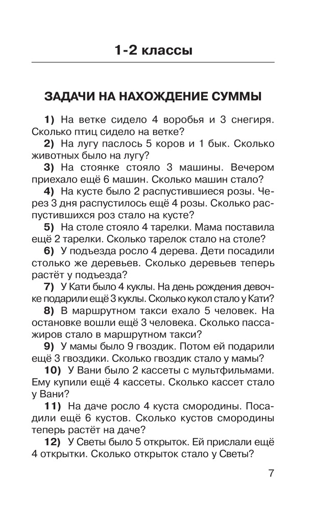 Давно применяю в своей педагогической работе пособия Узоровой О. В. и Нефедовой Е. А. В пособии представлены все виды задач учебной программы за 1 – 4 классы. В данном пособии на один вид решения задачи представлено много текстовых задач для отработки навыка. Советую данное пособие учителям начальных классов.