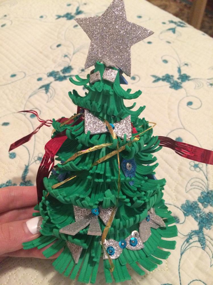 Дочке подарок на Новый год понравился, но одно Но: в наборе не было материала красного цвета для изготовления звездочки, хотя в описании подробно рассказывается как вырезать звезду из красного материала. Поэтому всего 3 звездочки из пяти.