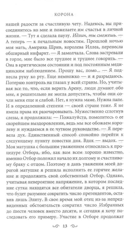 КоронаВ данный момент этот товар отсутствует в продаже. Возможно, у нас найдется аналогичный или похожий товар здесь. Серия: Lady Fantasy «Корона» — это удивительно романтичная и последняя книга в серии «Отбор». |