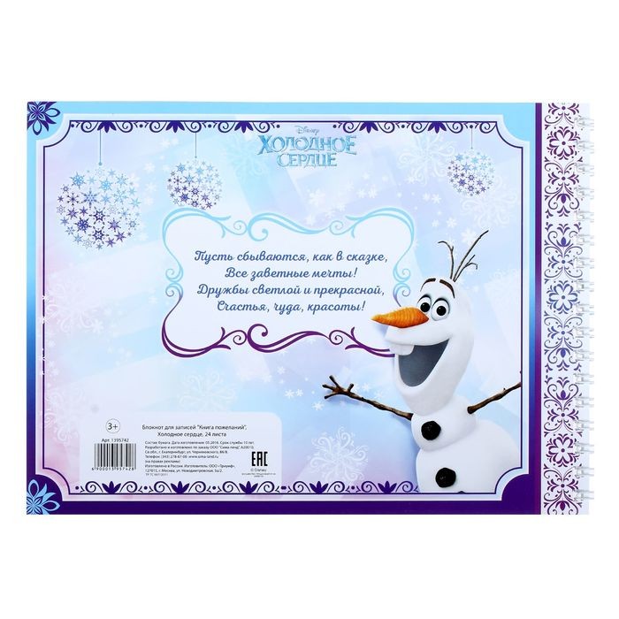 Disney Блокнот для записей «Книга пожеланий», 24 листаВ данный момент этот товар отсутствует в продаже. Возможно, у нас найдется аналогичный или похожий товар здесь. Серия: Холодное сердце Сохраните добрые слова с любимыми героями Disney на долгие годы! Дорогие сердцу пожелания на день рождения, увы, часто хранятся на неудобных носителях, теряются или забываются. Чтобы сохранить прекрасные поздравления, мы разработали специальную «Книгу пожеланий». Перечитывая её годы спустя, вы вновь переживёте радужные моменты. |
