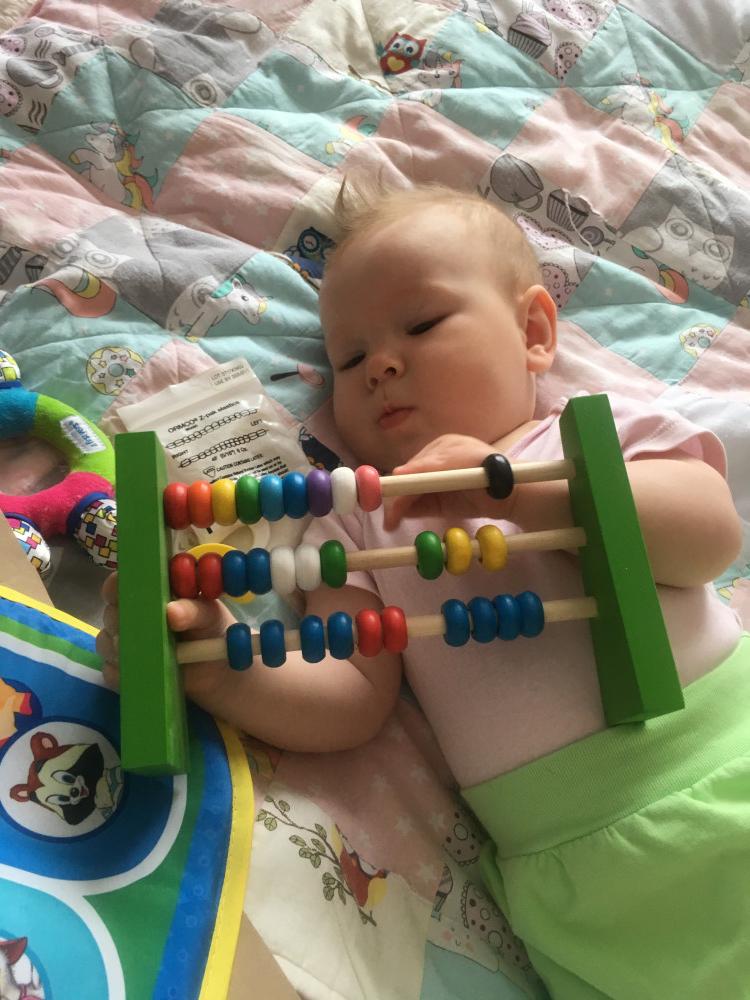 Удобная игрушка, можно просто погреметь (1 годик) и посчитать немного (3 годика)