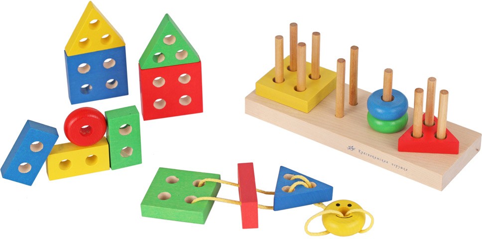 Краснокамская игрушка Деревянный конструктор «Геометрик»В данный момент этот товар отсутствует в продаже. Возможно, у нас найдется аналогичный или похожий товар здесь. Набор «Геометрик» - это конструктор из дерева. В нем спрятано сразу три развивающих игры - сортер, мозаика и шнуровка.Играя с «Геометриком» ребенок познает цвета, геометрические фигуры, учится считать, собирать пирамидки и другие конструкции. Ребенка можно научить надевать фигурки, как на штырьки, так и на шнурок, это координирует движения и развивает моторику. Также взрослые могут рассказать малышу о цветах и показать как сортировать фигурки по цвету. То же самое можно проделать с формами – научить маленького исследователя отличать круг от квадрата и так далее. |