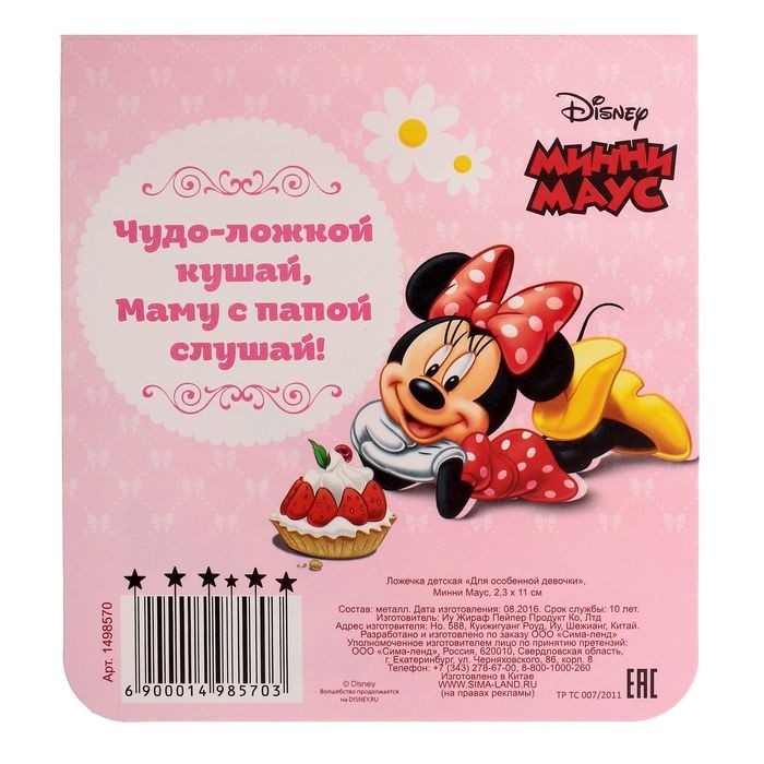 Disney Ложечка детская «Для особенной девочки», Минни Маус, (2,3х11 см)В данный момент этот товар отсутствует в продаже. Возможно, у нас найдется аналогичный или похожий товар здесь. Серия: Минни Маус Ложечка детская от ТМ Disney выполнена из высококачественной стали. Эксклюзивный дизайн, эстетичность и функциональность позволят занять достойное место среди кухонного инвентаря и порадуют любого ребенка. |