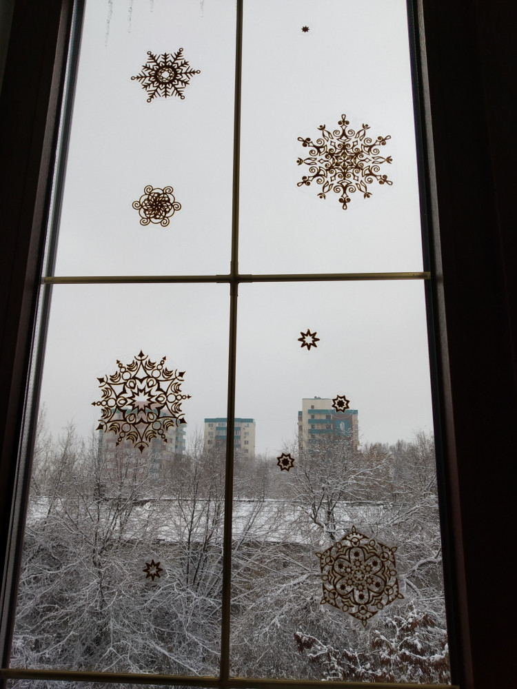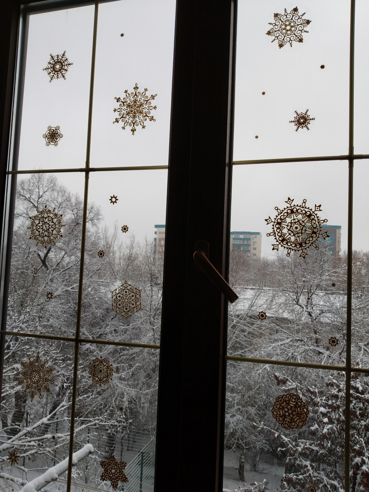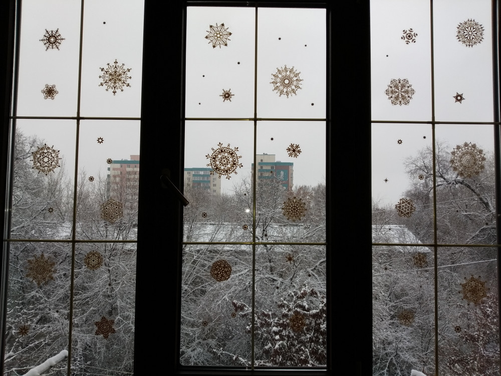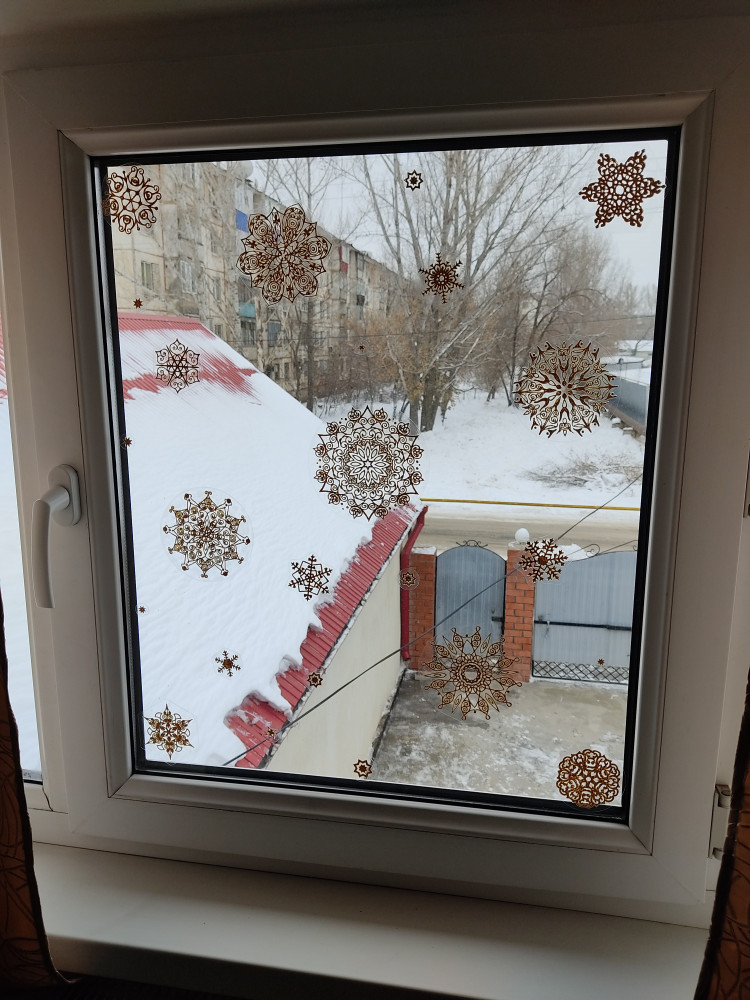 Снежинки просто супер! Легко клеятся, можно переклеить, если что-то не так. Клеила на окна, зеркало и кухонный шкаф. Можно еще и на холодильник, в общем куда угодно, где есть гладкая поверхность. Спасибо, Flip, заказ пришел во время!