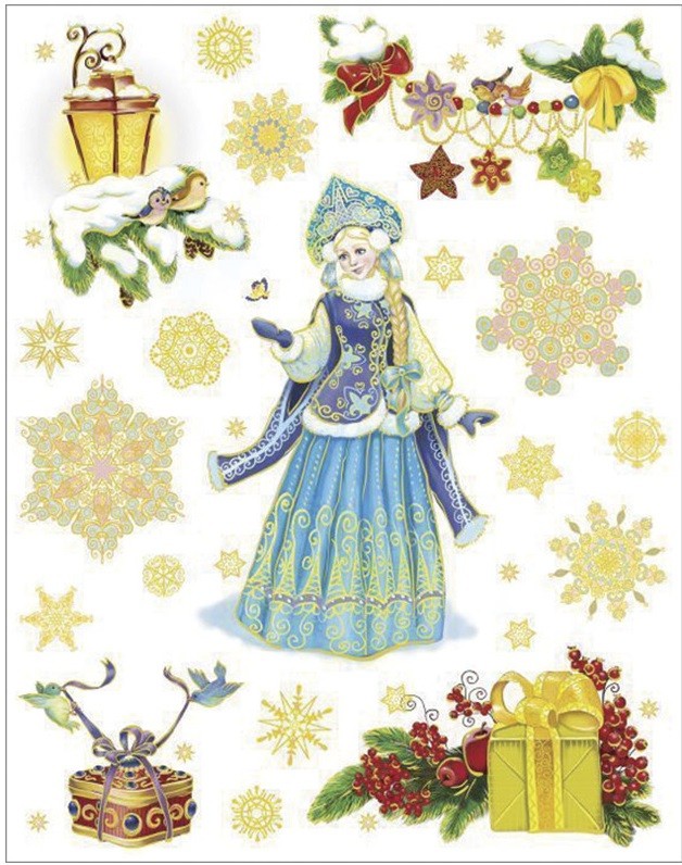 Очень красиво и удобно, можно композицию наклеек распределить и дополнить снежинками. Лучше чем цельная наклейка. Снегурочка - красавица, такая нежная, что словами не передать! Всё как в сказке!