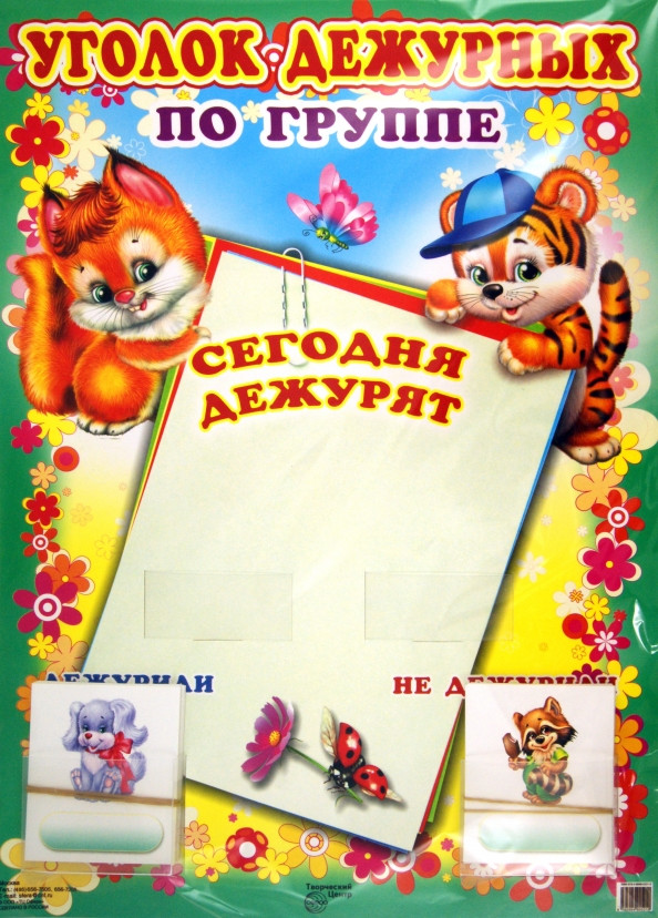 Серия: Уголок дежурных Наглядное пособие «Уголок дежурных по группе». С набором карточек: «Дежурили — Не дежурили». Сделано в России. |
