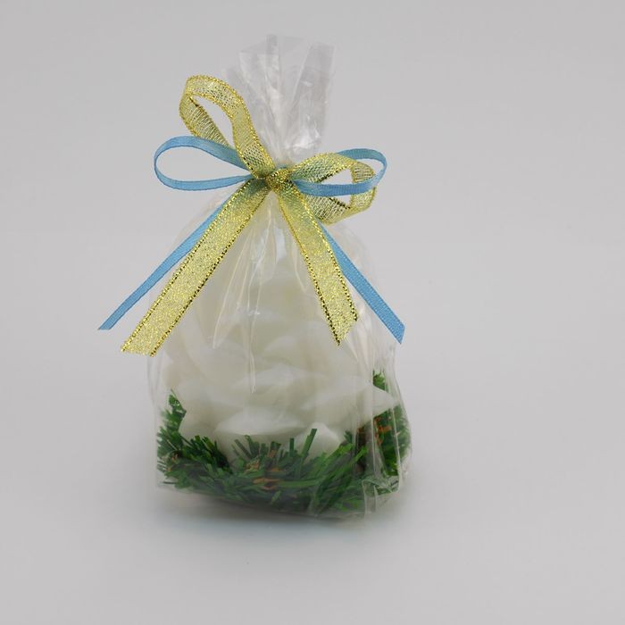 Прекрасный сувенир на Новый год! Шишка хоть и белая, но выглядит как настоящая! Не маленькая, гореть будет долго. Подставочка устойчивая, но воск протекает немного. Приходит упакованная в прозрачную обертку, которая перевязана двумя ленточками!