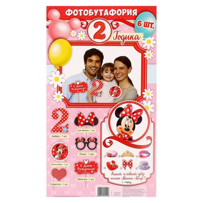Отзывы «Фотобутафория на палочке «2 года», Минни Маус, 6 предметов»