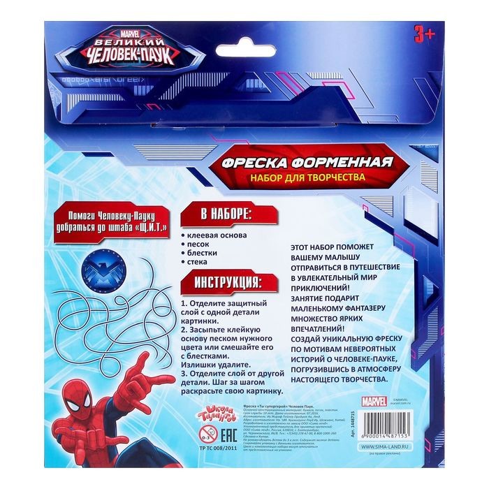 Marvel Фреска «Ты супер герой», 9 цветов пескаВ данный момент этот товар отсутствует в продаже. Возможно, у нас найдется аналогичный или похожий товар здесь. Серия: Человек-Паук Задатки творчества закладываются с раннего детства, поэтому так важно уделять внимание развитию креативных способностей и мышления у малышей. Фреска «Ты супер герой» Человек Паук 9 цветов песка по 4 грамм, стек, блестки 2 гр — это тот товар, который поможет ребенку открывать для себя что-то новое, развиваться и совершенствоваться. |