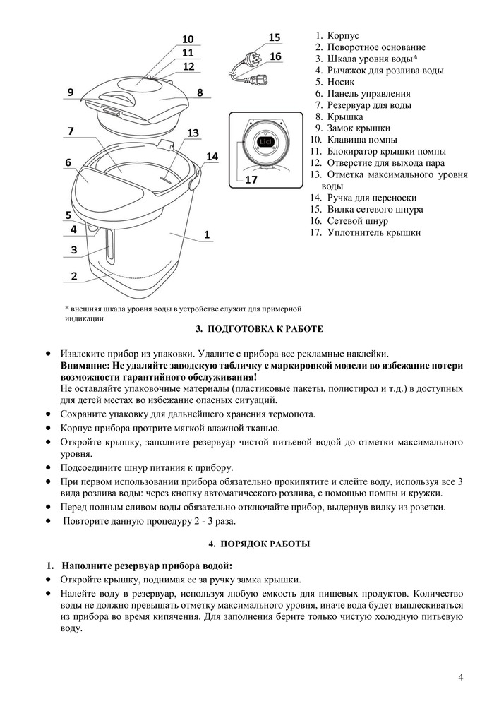 Polaris Термопот PWP 2817В данный момент этот товар отсутствует в продаже. Возможно, у нас найдется аналогичный или похожий товар здесь. Термопот Polaris PWP 2817 Floris предлагает горячую воду в течение 24 часов. Кроме того, он снабжен большим количеством полезных функций, несколькими степенями защиты и может поддерживать температуру воды в течение 4 часов после отключения электроэнергии. |