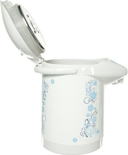 Термопот такой, как на фото. Работает бесшумно. Вода закипает быстро. Пока работает на отлично!