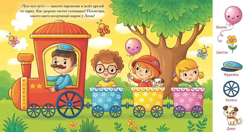 Отличная книжка - очень довольная приобретением. Малышу очень нравится. В сюжете на каждой страничке есть песик Джек, который порой где-то прячется - это веселит малыша =)