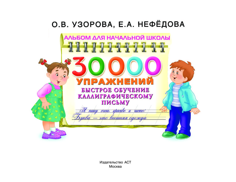 30000 упражнений. Быстрое обучение каллиграфическому письмуВ данный момент этот товар отсутствует в продаже. Возможно, у нас найдется аналогичный или похожий товар здесь. Серия: Альбом для начальной школы Прописи «30 000 упражнений. Быстрое обучение каллиграфическому письму» помогут ребёнку выработать правильный и красивый почерк. В прописях использованы как традиционные приёмы обучения навыкам каллиграфического письма, так и авторские методы известных педагогов-практиков О.В. Узоровой и Е.А. Нефёдовой. |
