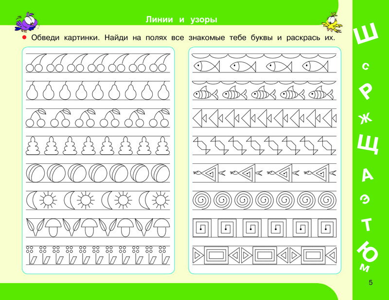 В этой книге собраны все упражнения по подготовке к письму и, собственно, отработке почерка. Много заданий, много страниц. Начинается книга с обведения элементов по пунктиру - домик, волны и т. п. и заканчивается отработкой почерка.