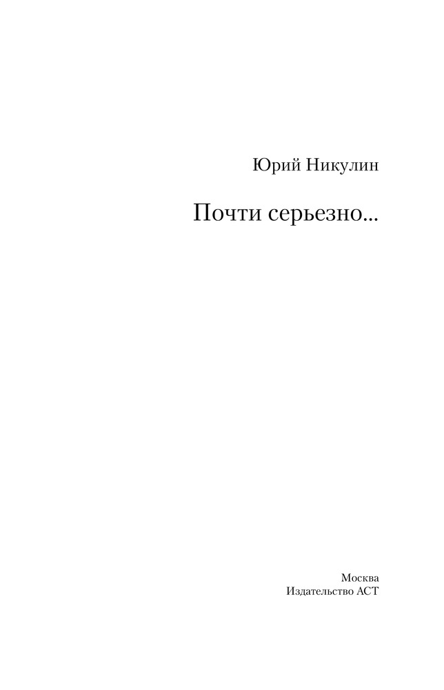 «В действительности все выглядит иначе, чем на самом деле». С этой фразы Станислава Ежи Леца начинается книга Юрия Никулина «Почти серьезно...».