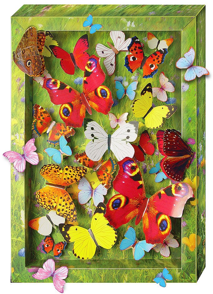 В данный момент этот товар отсутствует в продаже. Возможно, у нас найдется аналогичный или похожий товар здесь. Картина «Взлетающие бабочки» действительно волшебная: с неё будто взлетают, подрагивая крыльями, яркие бабочки. Сделать картину в технике простой бумагопластики легко – вырезать и выгнуть детали, склеить "волшебные" крепления и при помощи креплений наклеить детали на картину. Эффект перспективы достигается за счет глубокой готовой рамки и технической возможности "волшебных" креплений приближать и удалять детали. Клей не понадобится. Вместо клея – двусторонний скотч.