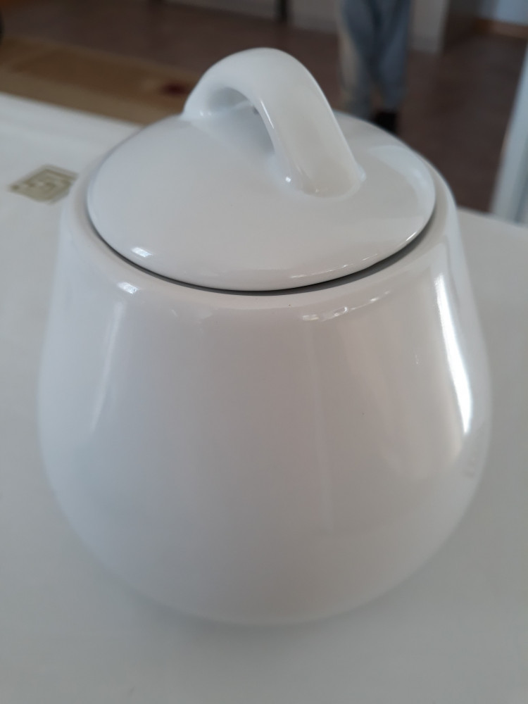 Сахарница отличная, только цвет отличается, она не молочно белая а белая с синим отливом. К качеству претензий нет, как всегда курьерская доставка вовремя и быстрая...