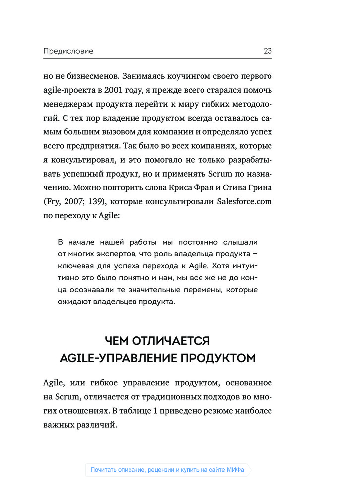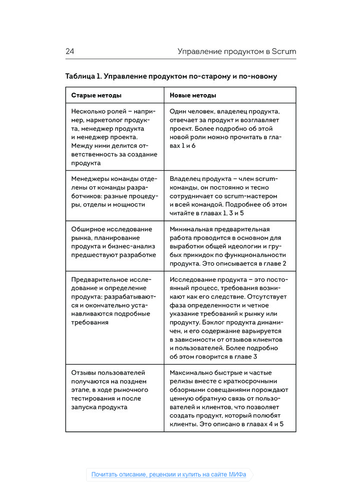 Книга рассчитана только на Product-Owner'a. Почерпнуть из книги, не являясь владельцем продукта, можно лишь некоторые хитрости, например: о грумминге бэклога и расчеты скорости спринта. Но посвящено этому от силы страниц 10. Многие ключевые моменты Scrum не раскрываются, оставлены лишь ссылки на книги, где об этом можно прочитать. В общем, мои ожидания книга не оправдала. Плюсом могу сказать, что достаточно легкий слог для технической литературы, прочла за один день.