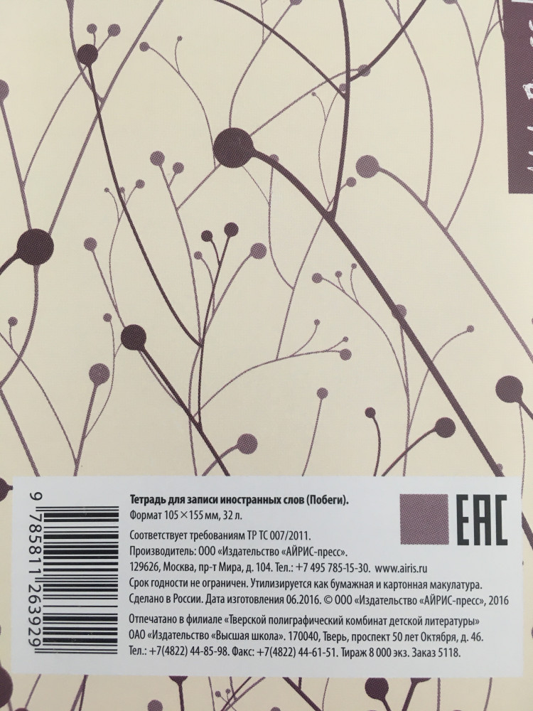 Отзывы «Тетрадь школьная для записи иностранных слов «Побеги»»