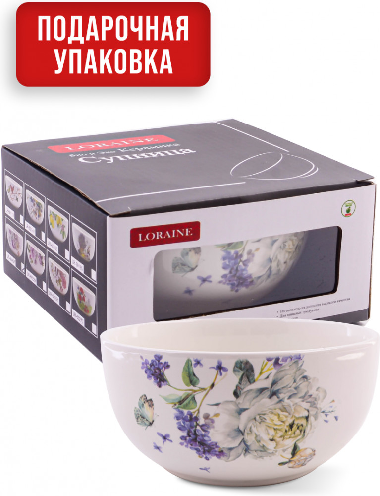 Loraine Супница «Букет фантазий»+84 размер крышки плотное прилегание нет ободка моется легко