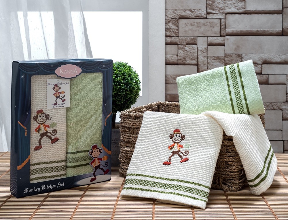 Karna Набор кухонных полотенец «Tera» (размер 40х65, 2 шт) цвет зеленыйВ данный момент этот товар отсутствует в продаже. Возможно, у нас найдется аналогичный или похожий товар здесь. Данные полотенца хорошо впитывают влагу, не теряют форму. При производстве полотенец используются стойкие красители, что позволяет надолго сохранить первоначальный вид изделия. |