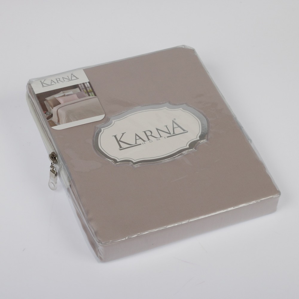 Ткань - сатиновое переплетение, приятная на ощупь, достаточно прочная, усадка произошла, но небольшая, цвет скорее ближе к бежево-песочному. Брала в комплект к пододеяльнику, простыне этой же серии бренда KARNA (Турция). Спасибо FLIPy - за широкий выбор ассортимента и размеров постельного белья! Жду поступления и других цветов этой серии белья.