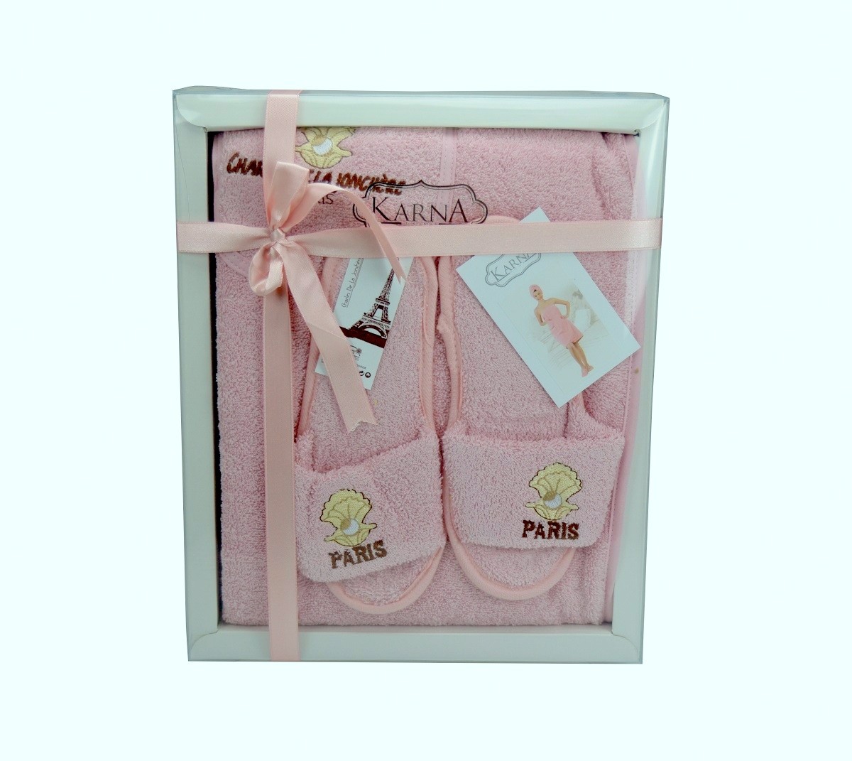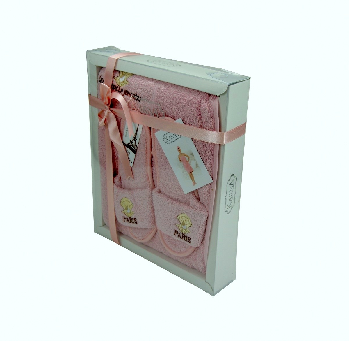 Karna Махровый банный комплект «Paris», цвет фиолетовыйВ данный момент этот товар отсутствует в продаже. Возможно, у нас найдется аналогичный или похожий товар здесь. Махровый банный набор «Paris» - замечательный подарок для женщины. Комплект выполнен из натурального хлопка, очень мягкий и приятный на ощупь. Он хорошо поглощает влагу, не вызывает раздражения, обладает легким массажным эффектом. |