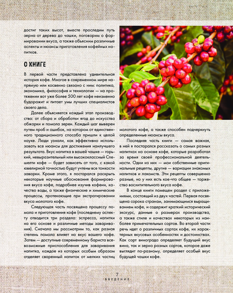 «Большая книга кофе» выходит за рамки банального изложения способов приготовления кофе, это увлекательное кофейное путешествие, которое вы совершаете вместе с её автором. Вы узнаете об истории возникновения вашего любимого напитка и о том, как он приобрёл такую огромную популярность во всём мире. Тристан подробно и со знанием дела описывает всё стадии приготовления кофе, а также необходимое для этого оборудование, приглашая читателя заглянуть за кулисы кофейной сцены. Кроме того, в «Большой книге кофе» содержится огромное количество хитростей и полезных советов по приготовлению этого напитка в домашних условиях, что особенно ценно, ведь после прочтения вы, безусловно, захотите угостить своих друзей самостоятельно сваренной чашечкой кофе! Но и это ещё не всё! Знаете ли вы, как найти идеальный френч-пресс? А как правильно выбрать кофе? На страницах «Большой книги кофе» вы не только узнаете самые вкусные рецепты кофе от Тристана Стивенсона, но и получите уникальные практические рекомендации, которые пригодятся не только начинающим, но даже опытным бариста.