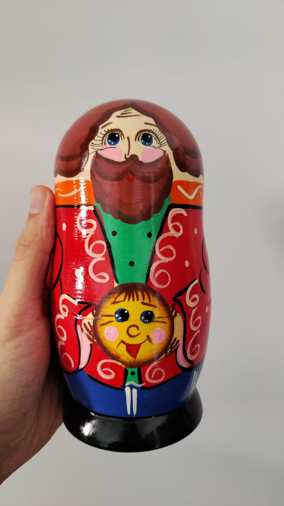 Первая матрёшка выполнена качественнее всего. Её сразу видишь в полиэтиленовой упаковке. Далее вторая была с подтёками краски на лице и руке. То есть, по лицу такой типа шрам-портак. жена сняла лак, оттёрла краску, сверху на красила по новой. последние три матрёшки отличаются по восприятию – на них нет лака. Как будто чем дальше от первой куклы, тем меньше лака наносили, на волке лак закончился. В целом, животных можно было бы нарисовать покрасивше. Красиво выглядят только первые две куклы, ну и колобок пойдет, его легко нарисовать. Дно куколок не окрашено, могли бы уже закрасить. Короче, матрёшку приходится доводить до ума своими руками. В этом есть своё очарование. Но покупать не рекомендую. Хорошо, что взял со скидкой.