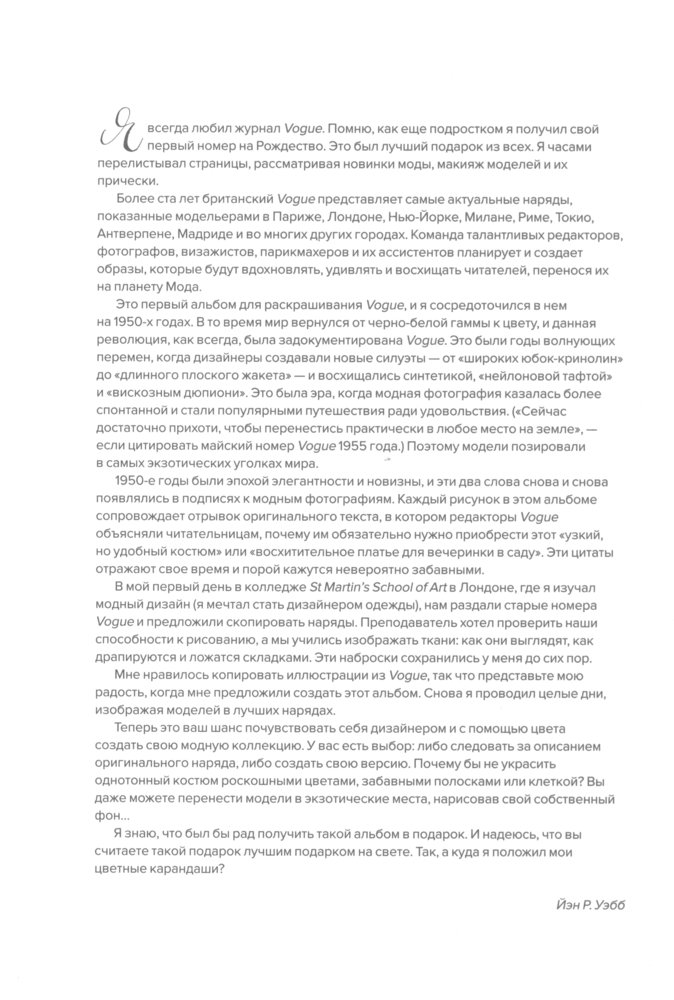 Серия: Krasota. История моды Этот первый альбом для раскрашивания от Vogue был создан удостоенным наград писателем, фэшн-редактором, профессором Йэном Р. Уэббом.